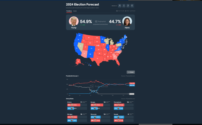 به گفته کاربران پلی مارکت، معاون رئیس جمهور کامالا هریس در حال حاضر با اختلاف 72 درصدی از آرای مردمی برخوردار است.