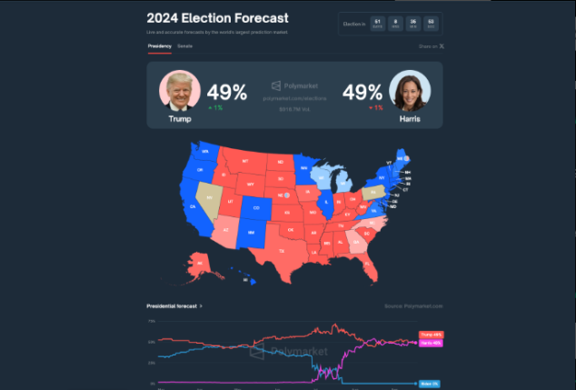 شانس پولی مارکت به نفع ترامپ مستقیماً پس از سوء قصد نافرجام – زمانی که رئیس جمهور جو بایدن هنوز نامزد حزب دموکرات برای انتخابات ریاست جمهوری 2024 بود، در بالاترین سطح خود قرار داشت. از آن زمان، با نزدیک شدن به انتخابات نوامبر، حواشی بین مبارزات سیاسی رقیب به طور قابل توجهی کاهش یافته است.