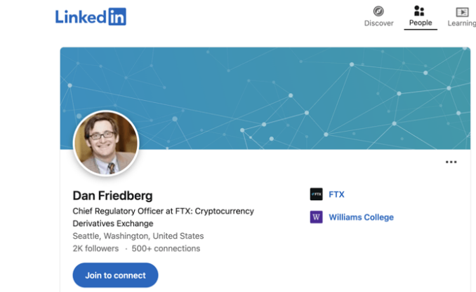 دانیل فریدبرگ، رئیس پیشین انطباق FTX در سال 2017 کار برای سم بنکمن-فرید را آغاز کرد و چند روز قبل از فروپاشی صرافی از FTX استعفا داد.
