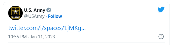 در 11 ژانویه، ارتش ایالات متحده اولین رویداد فضایی توییتر خود را در سال 2023 میزبانی کرد، با گنسلر و کمیسر SEC، کارولین کرنشاو، به این بحث پیوستند تا در مورد چگونگی و مکان سرمایه گذاری سربازان آمریکایی پول خود را ارائه دهند.