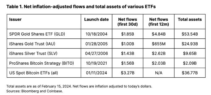 در همین حال، همچنین تاکید کرد که خالص ورودیهای ETF بیت کوین در 30 روز اول آن از ETF سهام طلایی SPDR در ایالت استریت در ماه اول پیشی گرفت.