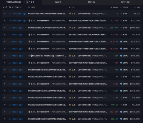 بر اساس دادههای اطلاعاتی Arkham، دولت ایالات متحده تراکنشهای بزرگی انجام داده است، بهویژه آدرس ذخیره وجوهی که از کارآفرینان استونیایی رمزارز پوتاپنکو و توروگین ضبط شده است.