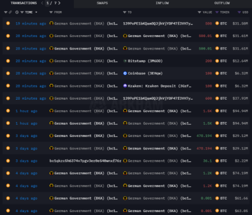 طبق دادههای Arkham Intelligence، یک پلتفرم دادههای زنجیرهای رمزارز، دولت آلمان طی دو هفته گذشته ۲۷۰۰ بیتکوین را به چندین صرافی منتقل کرده است.