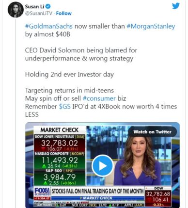 متیو مکدرموت، رهبر داراییهای دیجیتال گلدمن ساکس، گفت که این بانک در بررسی برنامههای بلاک چین «بسیار مثبت» باقی میماند.