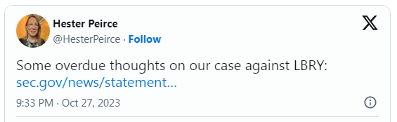 هستر پیرس از کمیسیون بورس و اوراق بهادار ایالات متحده (SEC) نظر مخالفی در مورد شکایت تنظیم کننده علیه شرکت بلاک چین LBRY صادر کرده است.
