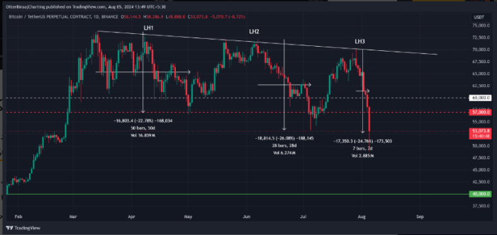 سقوط فلش بیت کوین همه را غافلگیر کرد. جفت قیمت بیت کوین نتوانست سطوح حمایت قبلی خود را در 60000 و 57000 دلار نگه دارد و در نهایت به زیر 50000 دلار سقوط کرد.