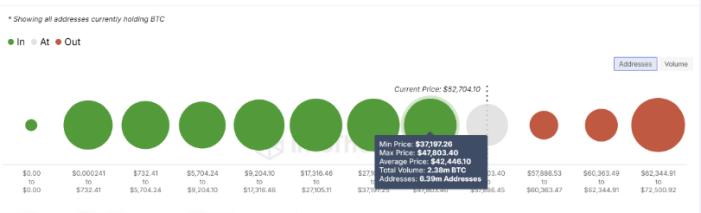 در حالی که طرفداران محبوب اشاره کردند که بیت کوین باید در 48000 دلار یا 44000 دلار افزایش یابد، داده های Intotheblock نشان می دهد که گروه دارندگان بزرگ همچنان پایین تر است.