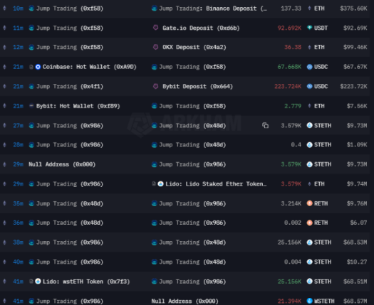 در 14 آگوست، آدرس کیف پول Jجامپ تریدینگ، که توسط Lookonchain ذکر شده است، روند برداشت Lido از دارایی های ETH خود را در ساعت 7:47 صبح UTC آغاز کرد.
