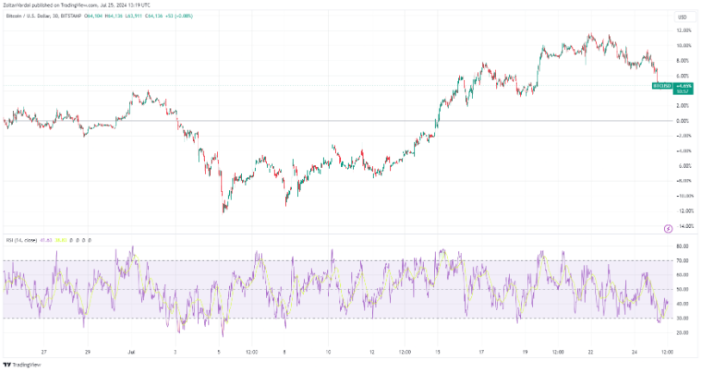 علیرغم خرید اخیر ماراتون، قیمت بیت کوین در تلاش است تا بالای مرز 64000 دلار باقی بماند.