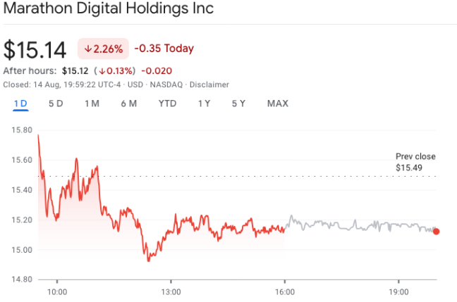 سهام ماراتن در روز 2.26 درصد کاهش یافت و به 15.14 دلار رسید. به گفته گوگل فایننس، قیمت سهام آن تقریباً 34 درصد از سال گذشته کاهش یافته است.