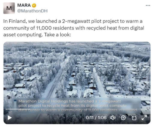به گفته Thiel شرکت ماراتون دیجیتال، سیستمهای گرمایش مبتنی بر استخراج بیت کوین میتوانند انتشار کربن را کاهش داده و هزینههای گرمایش را در آینده کاهش دهند: