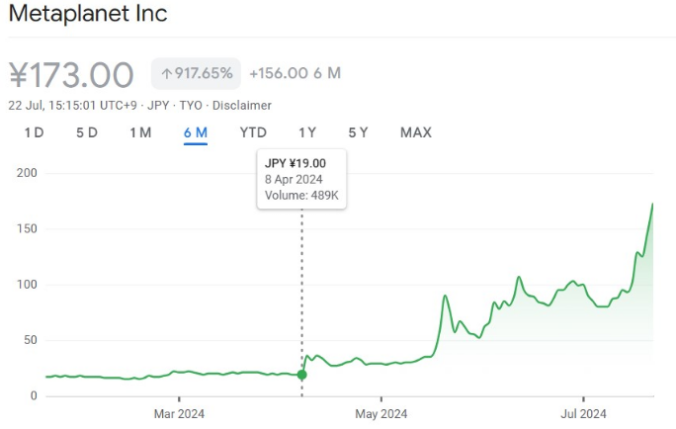 به نظر می رسد خرید اخیر این شرکت و افزایش بیت کوین بر قیمت سهام متاپلنت تأثیر گذاشته است. داده های گوگل فایننس نشان می دهد که ساعاتی پس از اعلام، سهام با 19.31 درصد افزایش به 173 ین (1.10 دلار) رسید.