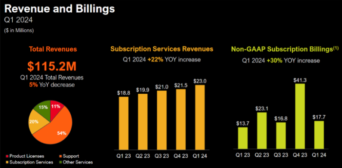 در سه ماهه اول سال 2024، مایکرواستراتژی درآمد 115.2 میلیون دلاری را گزارش کرد که کمتر از انتظارات تحلیلگران 121.73 میلیون دلاری بود و نشان دهنده کاهش 5.5 درصدی نسبت به سال گذشته است. این شرکت همچنین زیان خالص 53.1 میلیون دلاری یا 3.09 دلار به ازای هر سهم را ثبت کرد که کاملاً در تضاد با درآمد خالص 461.2 میلیون دلاری یا 31.79 دلار به ازای هر سهم گزارش شده در مدت مشابه سال گذشته است.
