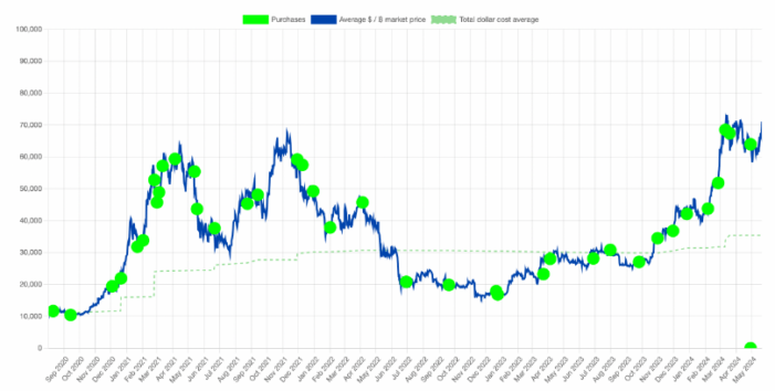 تا مارس 2024، مایکرواستراتژی دارای 205000 بیت کوین با 17 میلیون سهم موجود بود که در نتیجه تقریباً 0.012059 بیت کوین به ازای هر سهم حاصل شد.