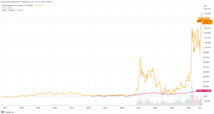سهام مایکرواستراتژی از سال 2020 بیش از 1500٪ افزایش یافته است، در حالی که شاخص S&P 500 در همان دوره چهار ساله کمی بیش از 111٪ افزایش یافته است.