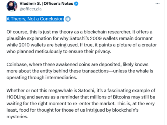 BTCparser در پستی در 19 نوامبر گفت: “من را به این شک می برد که مگا نهنگ مرموز 2010 ممکن است در واقع ساتوشی باشد.” BTCparser افزود، با این حال، این یک “نظریه، نه یک نتیجه” باقی می ماند.