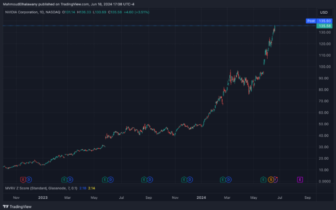 این غول پردازش گرافیکی و تراشههای هوش مصنوعی در حال حاضر دارای ارزش بازار 3.34 تریلیون دلاری است که نسبت به ارزشهای بازار 3.32 تریلیون دلاری مایکروسافت و 3.29 تریلیون دلاری اپل پیشی گرفته است.