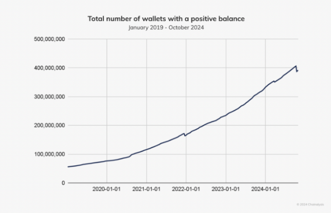 بر اساس گزارش Chainalysis، بیش از 400 میلیون کیف پول کریپتو دارای تراز مثبت هستند، زیرا بازار صعودی همچنان در حال گرم شدن است. رالی فعلی کاربران نهادی و خردهفروشی را به سمت ارزهای دیجیتال جذب میکند، بهویژه آنهایی که با استیبل کوینهای وابسته به دلار معامله میکنند.