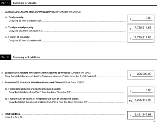 در پرونده ورشکستگی بانک 17.72 میلیون دلار و بدهی های 5.4 میلیون دلاری ذکر شده است و به «انتقال غیرمجاز» 17.5 میلیون دلار دارایی به گروه Fortress NFT و همچنین انتقال غیرقانونی اسرار تجاری و اطلاعات اختصاصی به فورت اشاره شده است.