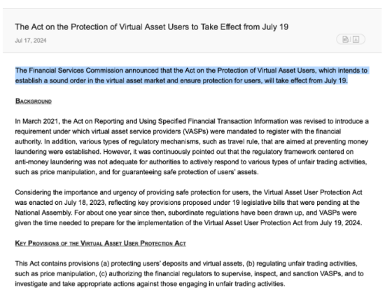 مقررات جدید تنظیم کننده امنیت مالی کره جنوبی که در مورد آن بسیار صحبت می شود، برای محافظت از کاربرانی که دارایی های رمزنگاری شده را با ارائه دهندگان خدمات دارایی مجازی (VASPs) خریداری می کنند و ذخیره می کنند، طراحی شده است، در 19 جولای به اجرا درآمد.