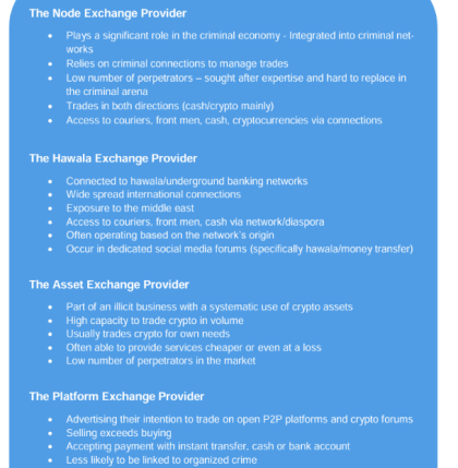 اداره پلیس سوئد و واحد اطلاعات مالی (FIU) پس از تجزیه و تحلیل خدمات ارائه شده توسط ارائه دهندگان غیرمجاز و غیرقانونی، صرافی های ارزهای دیجیتال را به عنوان “پولشویی های حرفه ای (PML)” طبقه بندی کرده اند.