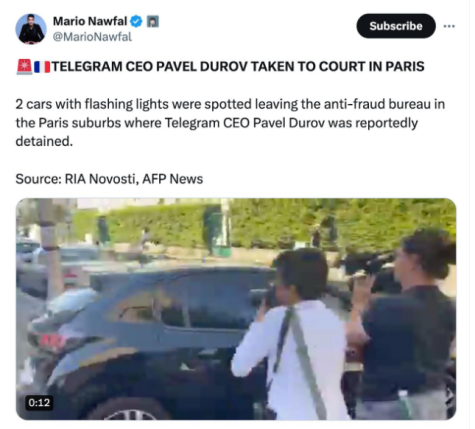 پیش از این، خبرنگار ریانووستی گزارش داد که دو خودرو با چراغ های چشمک زن با سرعت زیاد دفتر ملی مبارزه با کلاهبرداری در حومه پاریس را ترک کردند، جایی که قرار بود تلگرام دوروف در آن نگهداری شود.