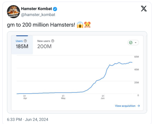 بازی همستر کامبت مبتنی بر تلگرام در حال حاضر میزبان ۱۰۰ میلیون کاربر فعال ماهانه است. این بازی مدعی شد که به سومین اپلیکیشن سریع تاریخ تبدیل شده است که از مرز 150 میلیون کاربر و Pokémon GO و Meta’s Threads عبور کرده است.
