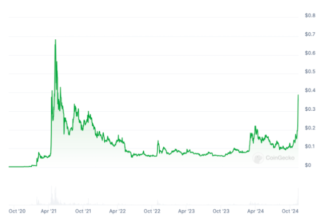 طبق دادههای کوین جکو، در ۱۲ نوامبر، دوج کوین برای اولین بار از ماه می ۲۰۲۱ به بالاتر از ۰.۴ دلار رسید. در زمان نگارش این مقاله، این ارز دیجیتال با قیمت 0.38 دلار معامله می شود که در 24 ساعت گذشته حدود 8 درصد کاهش داشته است.