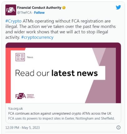 رگولاتور مالی بریتانیا، اداره رفتار مالی (FCA)، 26 دستگاه از 34 دستگاه خودپرداز ارزهای دیجیتال را که از ابتدای سال 2023 بازدید و بازرسی کرده بود، «اختلال» ایجاد کرد.