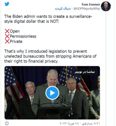 Emmer نگران است که CBDC می تواند بر حریم خصوصی مالی شهروندان آمریکایی تأثیر بگذارد و به یک “ابزار نظارتی خطرناک” تبدیل شود.