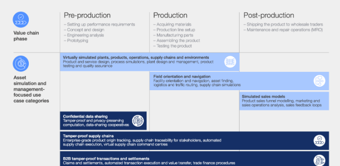 علاوه بر این، اشاره کرد که متاورس صنعتی می تواند در طول چرخه عمر محصول، از جمله مراحل پیش تولید، تولید و پس از تولید استفاده شود.