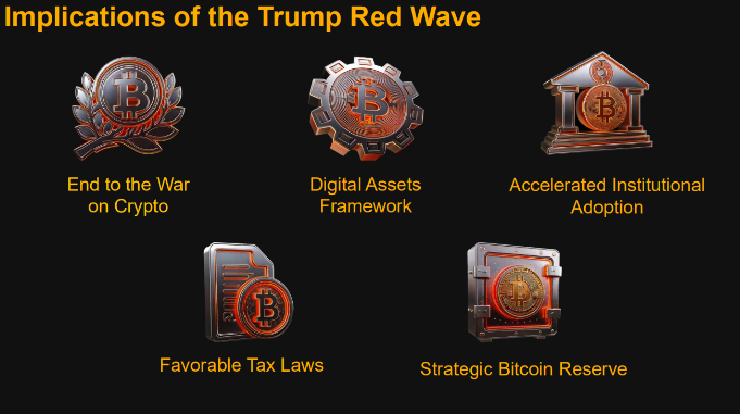 ریاست جمهوری ترامپ و مجلس سنای جمهوری خواه می تواند پیامدهای مثبت قابل توجهی برای صنعت کریپتو داشته باشد، از جمله پایان دادن به «جنگ با ارزهای دیجیتال»، تسریع پذیرش سازمانی، و ذخیره استراتژیک بیت کوین، از جمله مزایای دیگری که سیلور در ارائه خود در 16 نوامبر به اشتراک گذاشت.