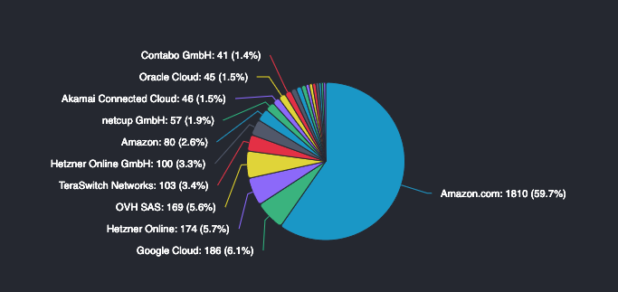 در حال حاضر، اکثر 5901 گره اتریوم فعال از طریق ارائه دهندگان وب متمرکز مانند خدمات وب آمازون اجرا می شوند، که بسیاری از کارشناسان ادعا می کنند که بلاک چین اتریوم را در معرض یک نقطه شکست متمرکز قرار می دهد.