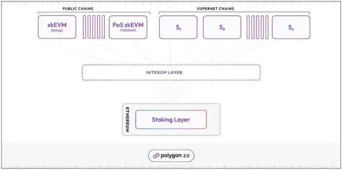 یکی دیگر از پروژه های بلاک چین لایه 3 پالیگان میباشد. پالیگان 2 بازطراحی استراتژیک زنجیره PoS Polygon را نشان می دهد که آن را از یک زنجیره جانبی به یک زنجیره zkEVM Validium منتقل می کند. این ارتقا، مفهوم سوپرنت های چند ضلعی را معرفی می کند، بلاک چین های لایه 2 قابل شخصی سازی که در زنجیره چند ضلعی مستقر هستند. معماری پالیگان 2.0 بر روی چهار لایه متمایز ساخته شده است: لایه استیکینگ، لایه Interop، Execution Layer و Proving Layer که هر کدام نقش مهمی در عملکرد و مقیاس پذیری شبکه دارند.