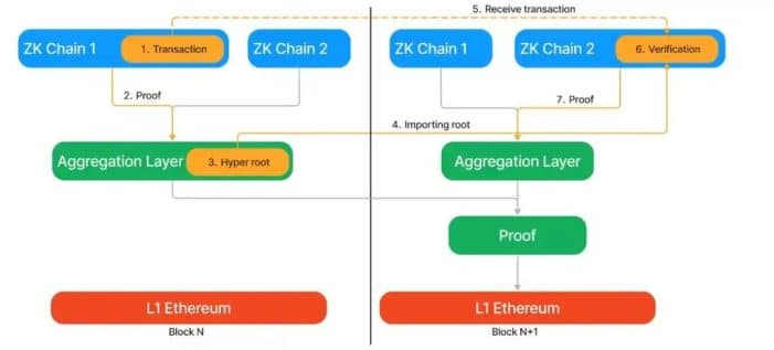 تجمیع یک جزء حیاتی برای بهبود مقیاس پذیری ارتباطات بین بلاک چین است. تجمیع اثبات، چندین شبکه لایه 2 را قادر میسازد تا با یک اثبات ترکیبی روی لایه 1 مستقر شوند، بار لایه 1 را کاهش میدهد و هزینههای ذخیرهسازی را که زنجیرههای لایه 2 به اتریوم میپردازند رام میکند.