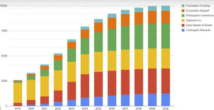 Algorand Inc و بنیاد الگوراند اکثریت سهم توکن ALGO را دریافت کردند و باقیمانده همانطور که در زیر می بینید توزیع می شود: