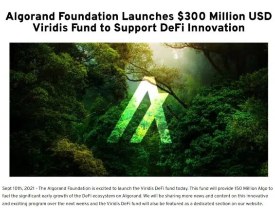 الگوراند نیز نسبت به خود خوش بین است و در صندوق VC خود به نام Algocapital سرمایه گذاری کرده است. این صندوق 100 میلیون دلار جمع آوری کرده است و از پروژه هایی حمایت می کند که هدفشان ایجاد این پروتکل است. بعداً در سال 2021، بنیاد این پروژه یک صندوق اضافی 300 میلیون دلاری به نام Viridis را برای حمایت از نوآوری DeFi راه اندازی کرد.