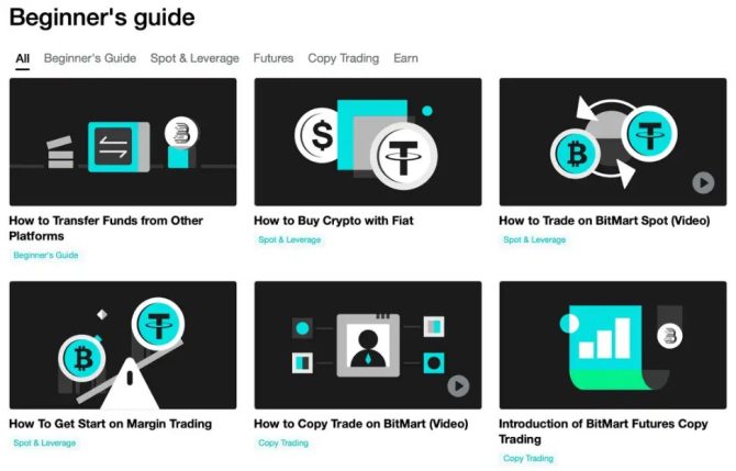 BitMart با ارائه بخش آکادمی بسیار جامع ، با مجموعه ای از منابع آموزشی در مورد ارزهای دیجیتال و فناوری بلاک چین، متمایز است. از راهنماهای مبتدی برای کمک به کاربران برای هدایت پلتفرم تا توضیحات عمیق مفاهیم پیشرفته بلاک چین، آکادمی برای پاسخگویی به کاربران در تمام سطوح تجربه طراحی شده است. بنابراین اگر به دنبال افزایش دانش رمزنگاری خود هستید یا نیاز به کمک با ویژگیهای پلتفرم دارید، آکادمی بیت مارت شما را پوشش میدهد.