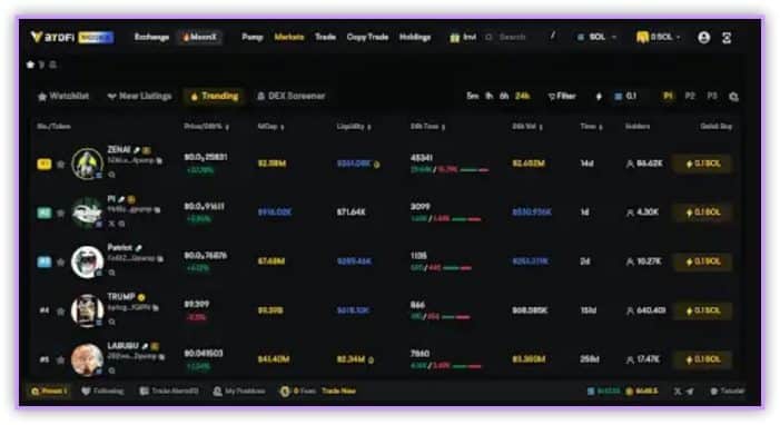 این پلتفرم، نقدینگی زنده، حجم معاملات ۲۴ ساعته، تعداد دارندگان و پرچمهای امنیتی را برای هر توکن نمایش میدهد. این آمار به کاربران کمک میکند تا قبل از معامله، سطح فعالیت و ریسک را ارزیابی کنند. ویژگی «خرید سریع» امکان مبادله فوری با مقادیر از پیش تعیینشده را فراهم میکند که اغلب در لاتهای ۰.۱ SOL نشان داده میشوند.
