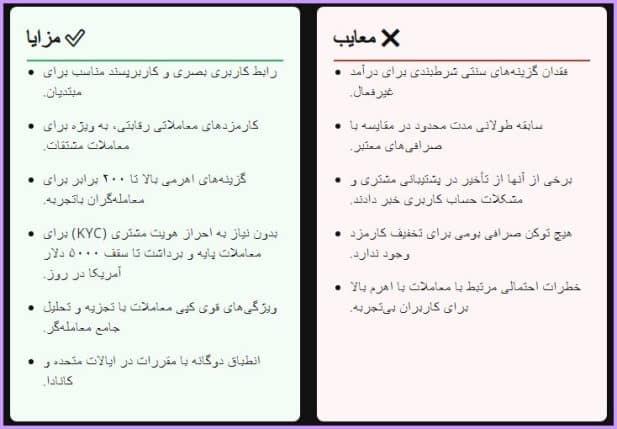 | کوین بیس | ۰.۱٪ | پشتیبانی نمیشود | بدون اهرم | بالاتر از حد متوسط |