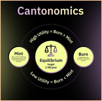 - مکانیسم تعادل سوزاندن و ضرب، با سوزاندن تمام کارمزدها و ضرب توکنهای جدید بر اساس مشارکتهای شرکتکنندگان، تضمین میکند که قیمت ارز دیجیتال کانتون منعکسکنندهی کاربرد واقعی شبکه باشد.