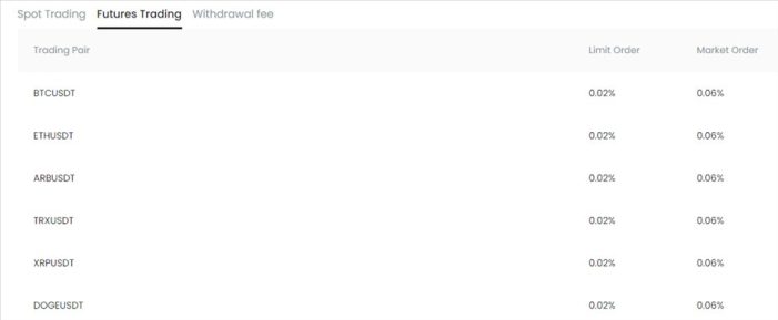 صرافی CoinCatch یک ساختار کارمزد ساده و بدون تخفیف های سطحی را حفظ می کند. برای معاملات نقدی، کارمزد سازنده و گیرنده ثابت 0.1٪ تعیین شده است، در حالی که معاملات آتی دارای کارمزد 0.02٪ برای سفارشات محدود و 0.06٪ برای سفارشات بازار است.