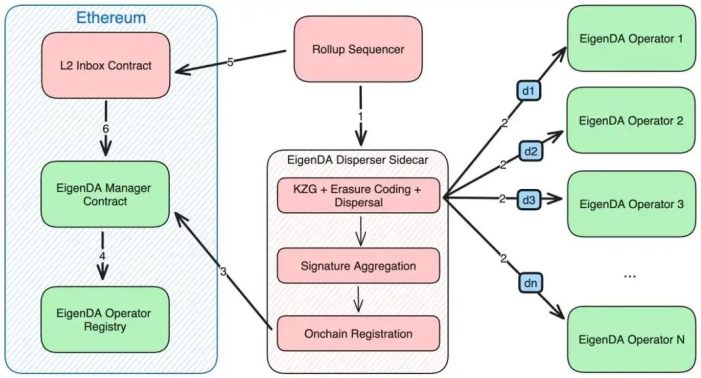بر اساس بحث قبلی ما در مورد خدمات دسترسی به داده، EigenDA به شرح زیر عمل می کند: