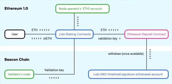 - مدیریت رجیستری اپوراتورهای نود: این قرارداد یک رجیستری از اپراتورهای گره را از طریق قرارداد NodeOperatorsRegistry نگهداری می کند. اتریوم ETH را بین اپراتورهای گره به صورت دورگرد توزیع می کند و از تخصیص عادلانه و متعادل وظایف سهام اطمینان می دهد.