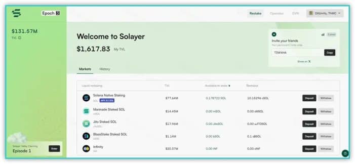 Solayer ابزارهای قدرتمند دیفای را با یک رابط کاربری تمیز و کاربرپسند ترکیب میکند و ویژگیهای پیشرفتهای مانند سپردهگذاری مجدد و پرداختهای کریپتو در زمان واقعی را برای کاربران تازه وارد و باتجربه آسان میکند.