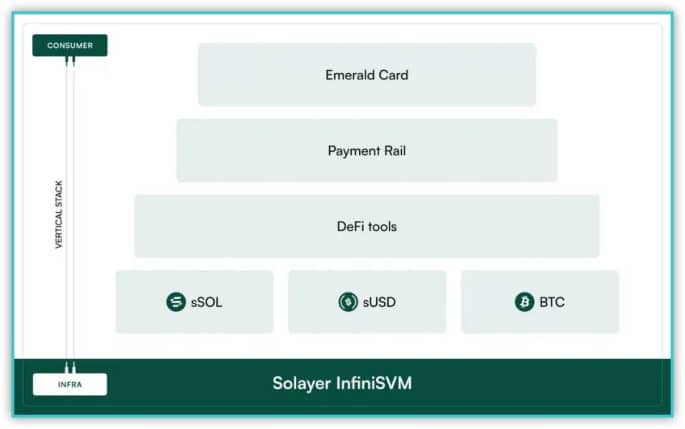 Solayer فراتر از یک سرمایهگذاری مجدد ساده عمل میکند. این شرکت مجموعهای از محصولات را معرفی میکند که برای ارائه یک تجربه رمزنگاری پرسرعت، غنی از بازده و متصل به دنیای واقعی طراحی شدهاند.
