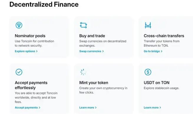 - ادغام تون کوین : Toncoin، ارز دیجیتال بومی تون، می تواند برای پرداخت استفاده شود، با ارزهای دیجیتال دیگر یا ارزهای فیات مبادله شود و در برنامه ها و خدمات مختلف در اکوسیستم TON ادغام شود.