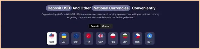 برای کسانی که ترجیح میدهند از ارزهای فیات استفاده کنند، WhiteBIT از گزینههای اصلی زیر پشتیبانی میکند: