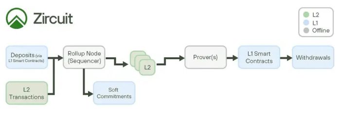 در حالی که پشته OP در ابتدا برای جمعبندیهای خوشبینانه طراحی شده بود، Zircuit آن را برای پشتیبانی از مدارهای zkEVM تغییر داده است. این بدان معناست که تراکنشها همچنان در یک مدل اجرای ترتیبدهنده-بچر-اجرای پردازش میشوند، اما به جای تکیه بر اثبات تقلب، همه تراکنشها با استفاده از اثبات اعتبار رمزنگاری تأیید میشوند. معاملات در مراحل زیر انجام می شود: