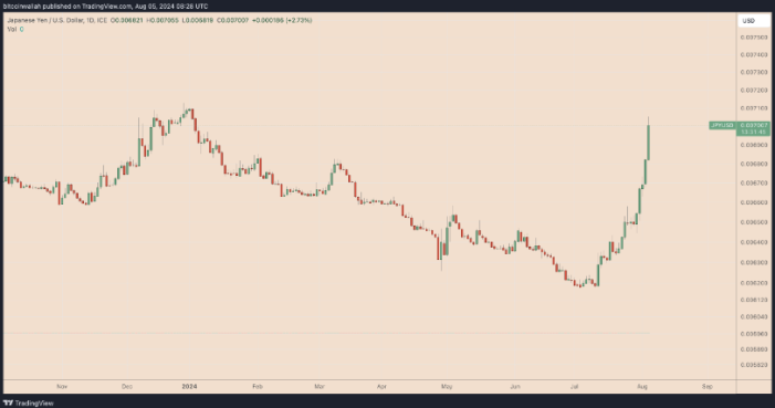 به بیان ساده، معامله گرانی که ین را برای سرمایه گذاری در دارایی های پرریسک تری قرض کرده بودند، اکنون این موقعیت ها را می بندند تا از هزینه های استقراض بالاتر و بازپرداخت بدهی ها جلوگیری کنند. نتیجه یک شکست در بازارهای سهام و کریپتو است که تنشهای ژئوپلیتیکی در خاورمیانه و ریسکهای رکود اقتصادی در ایالات متحده نیز بر فشار فروش افزوده است.